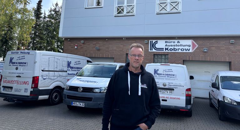 Oktober 2025. Einer der ältesten Handwerksbetriebe in Rostock, die Kobrow GmbH Inh. Thomas Wegner (Foto), hat das 100-jährige Jubiläum des Bestehens gefeiert. Der Firmeninhaber hatte 2002 von Joachim Kobrow die Sanitär-, Heizungs- und Klima-Firma übernommen. Im Jahr 1925 war von Paul Kobrow, Vater des heute 87-jährigen Joachim Kobrow, der Betrieb in der östlichen Rostocker Altstadt gegründet worden. Bevor Wegner Inhaber wurde, hatte der heute 59-Jährige seit 1982 in dem Betrieb eine berufliche Karriere vom Lehrling zum Meister hingelegt. Kobrow beschäftigt 30 feste Mitarbeiter und drei Azubis. Mehr Infos